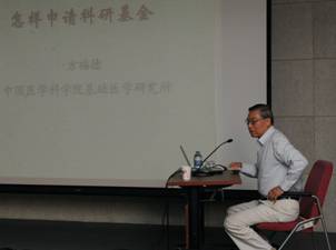 2011年10月11日,科研处邀请中国医学科学院基础医学研究所方福德教授就“怎样申请科研基金”进行了专题讲座。