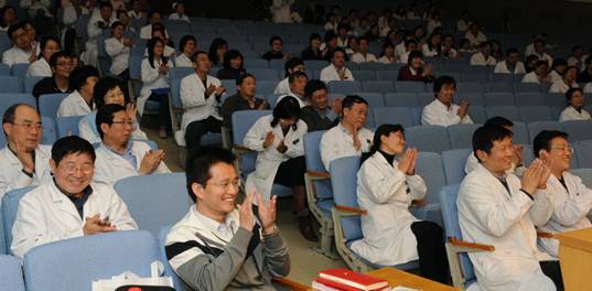 樊院士作了题为“精品战略与学校建设”的精彩报告。生动风趣的讲述了第四军医大学精品历练的过程及在正确战略思想指导下缔造的精品文化,特别是近年来实施精品战略,建设国际先进的研究型军医大学,打造精品讲座、精湛医术、精良设备、精品课程、精优论文等18项精品战略工程。樊院士睿智的思维、精彩的讲述和幽默的语言赢得了会场阵阵掌声。两个半小时的报告,让大家感到意犹未尽,深受启迪。报告结束后,与会人员与樊院士进行了充分的交流,会场气氛非常热烈。